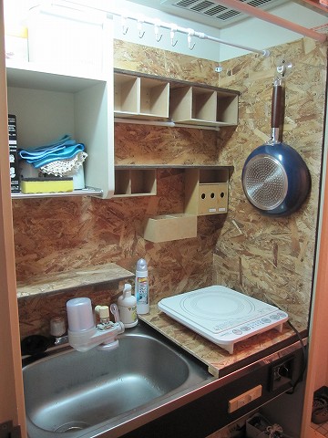 店で転がっている廃材を使って、お得意のなんちゃってシステムキッチンを製作☆