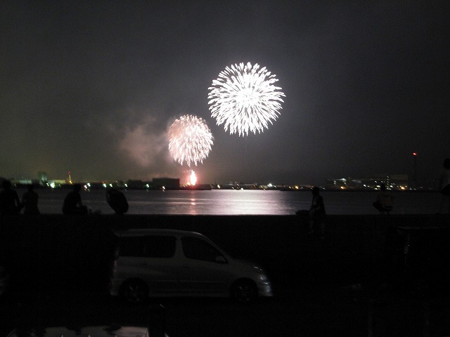 関空をバックに打ち上げられる花火は何ともヨイ感じでした('-'*)