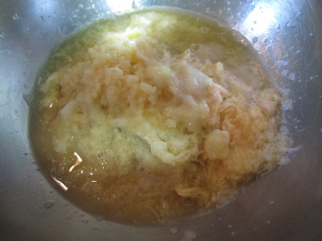 次に、ジャガイモ・リンゴを摩り下ろし、バナナのペーストを合わせます。