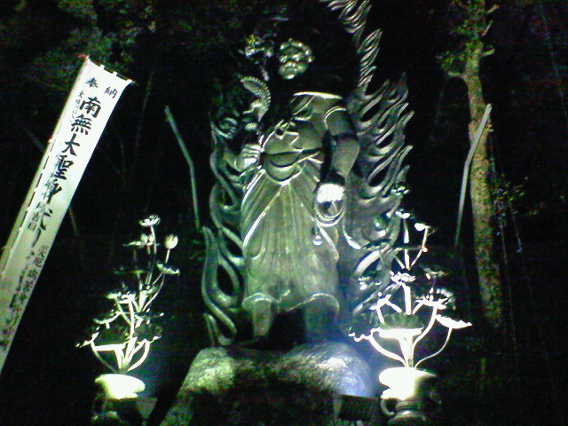 不動明王の御前、巻き上がる炎を囲みながらお札を読み上げて頂きます☆