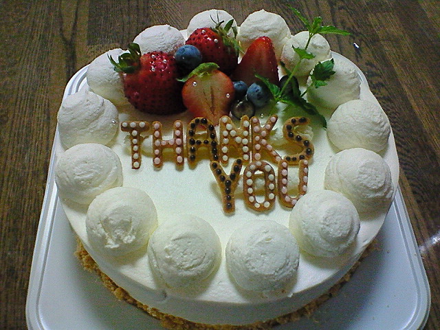 寝起きにヤイヤイ言いながら仕上げたケーキはこんな感じになりました☆